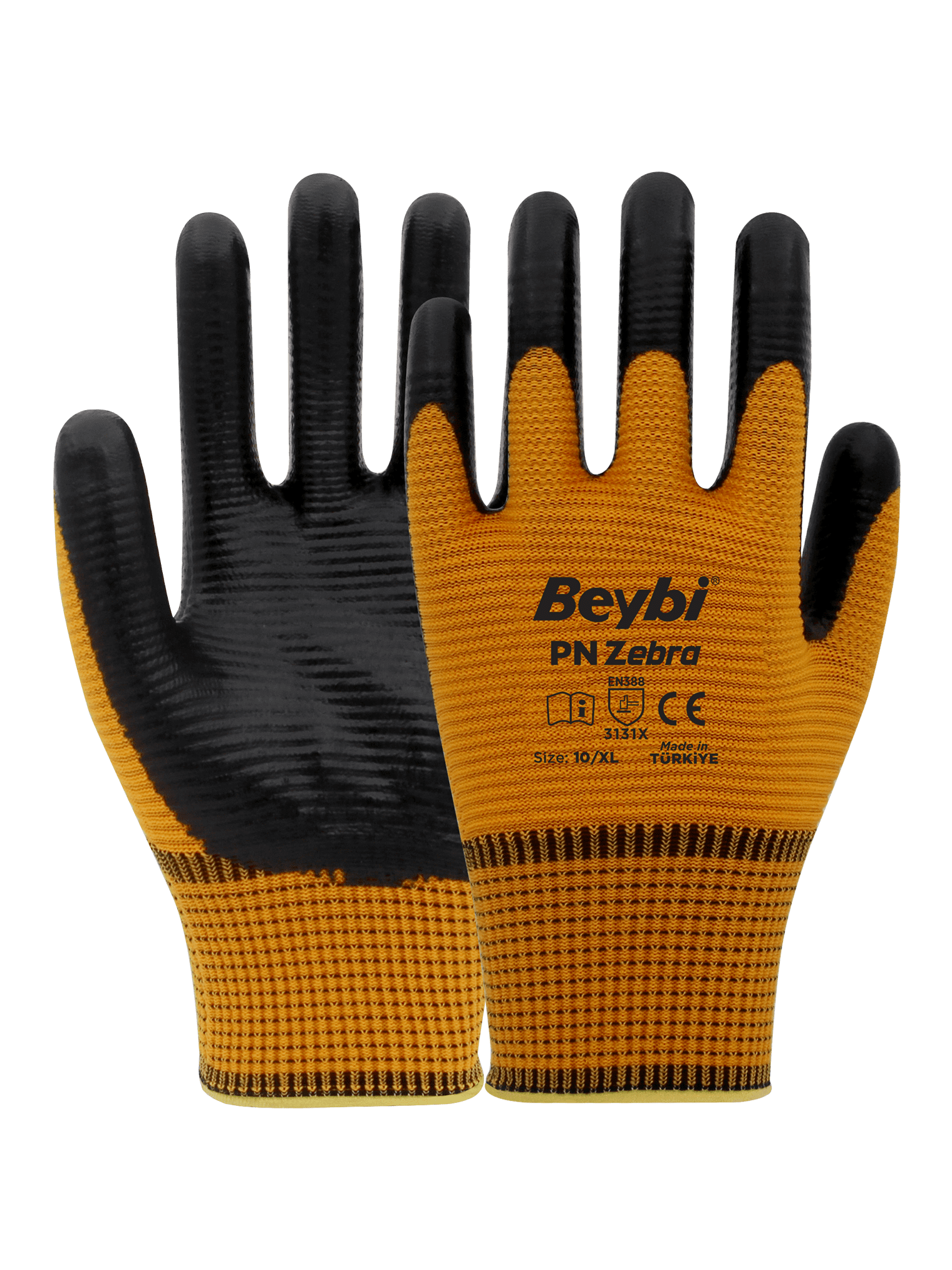 Tanım; Polyester iplikten örülmüş ve nitril ile yarı kaplanmış, iş eldiveni.